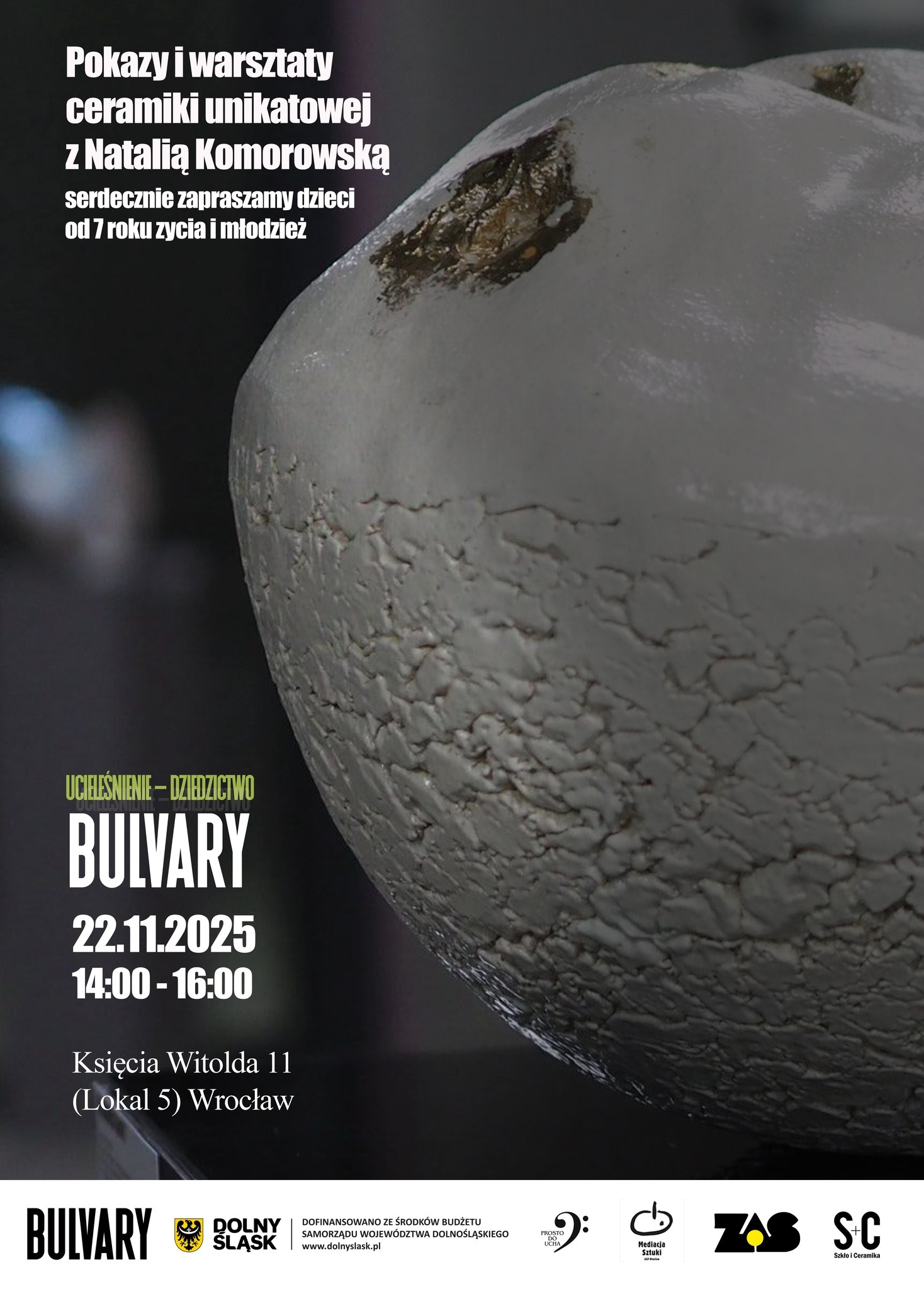 16 listopada 2025, godz. 15:00–18:00 Warsztaty „Mała forma rzeźbiarska w ceramice unikatowej” dla dzieci i młodzieży prowadząca: Natalia Komorowska